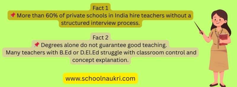 Hiring the right teacher is one of the most important decisions a school makes. In India, many private schools struggle to find teachers who are not only qualified on paper but also confident in the classroom. Degrees like B.Ed or D.El.Ed are important, but they do not always reflect teaching ability, communication skills, or classroom management.